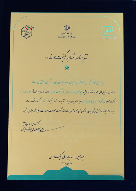 به گزارش روابط عمومی شرکت سیمان فارس نو ، در همایش جایزه ملی کیفیت که در سالن بین المللی همایش های صدا و سیما برگزار شد ، شرکت سیمان فارس نو برای دومین بار و به عنوان تنها شرکت سیمانی زیر مجموعه هلدینگ سیمان فارس و خوزستان موفق به دریافت تقدیر نامه یک ستاره جایزه ملی کیفیت شد. لازم به ذکر است تعداد شرکت های ارزیابی شده در جایزه ملی کیفیت 193 شرکت بوده که 69 شرکت واجد شرایط دریافت جایزه در سطوح مختلف بوده اند .
